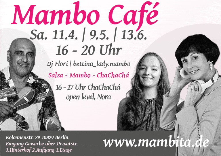 La Mambita ist Deine Salsa und Bachata Tanzschule in Berlin – ein Ort für Rhythmus, Freude und Gemeinschaft. Wir geben Tanzkurse in Salsa LA & NY Style und Salsa cubana. Oder magst Du lieber Bachata und Kizomba tanzen lernen? Unsere Tanzschule bietet Dir eine große Vielfalt an Tanzstilen für jedes Level – von Einsteiger bis Fortgeschritten. In unseren zahlreichen Kursen, Workshops & Events kannst Du neben Salsa, Bachata, Lady Styling, Kizomba, ChaChaChá, Standard/ Latein auch Tango argentino tanzen.