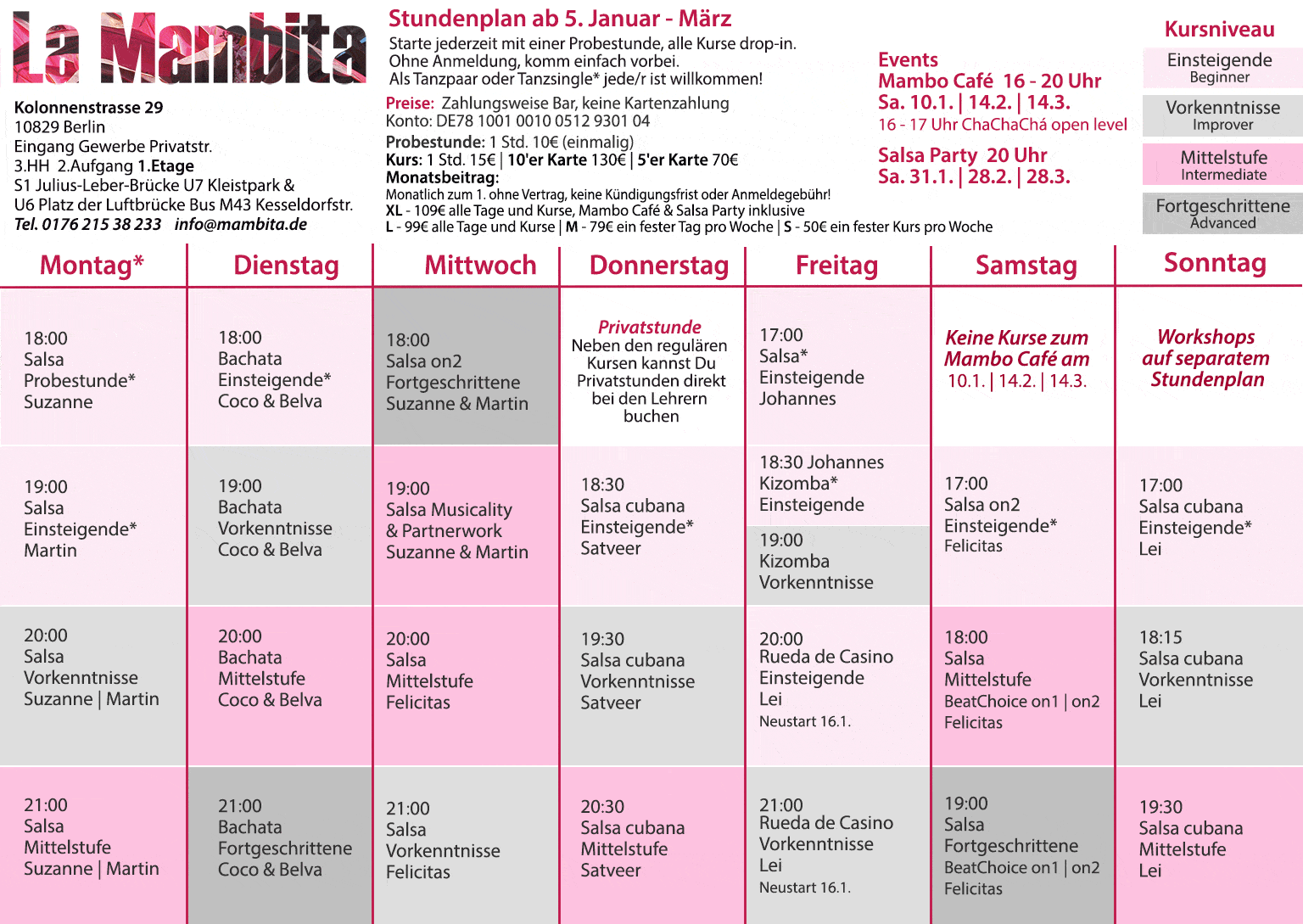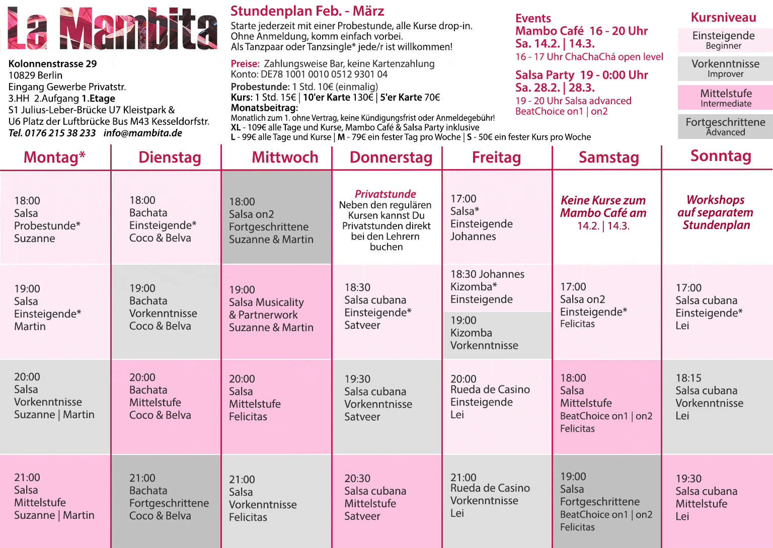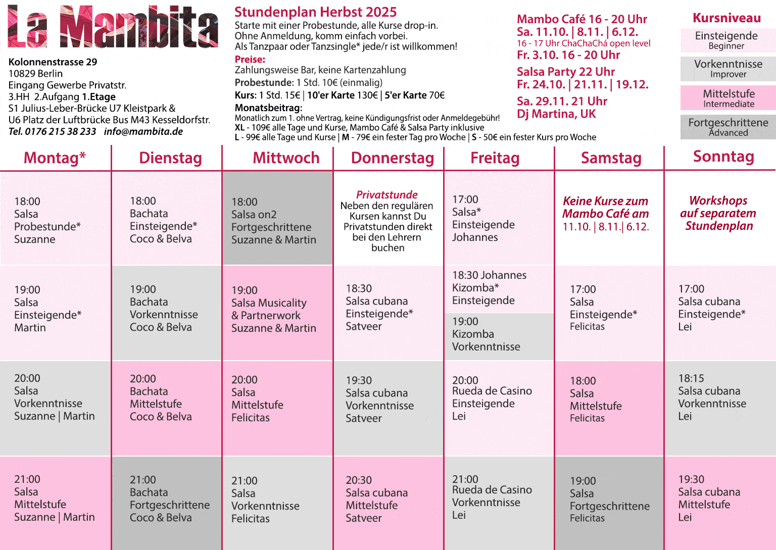 Alle Kurse sind drop in. Als Tanzpaar oder Tanzsingle*, jede/r ist willkommen!